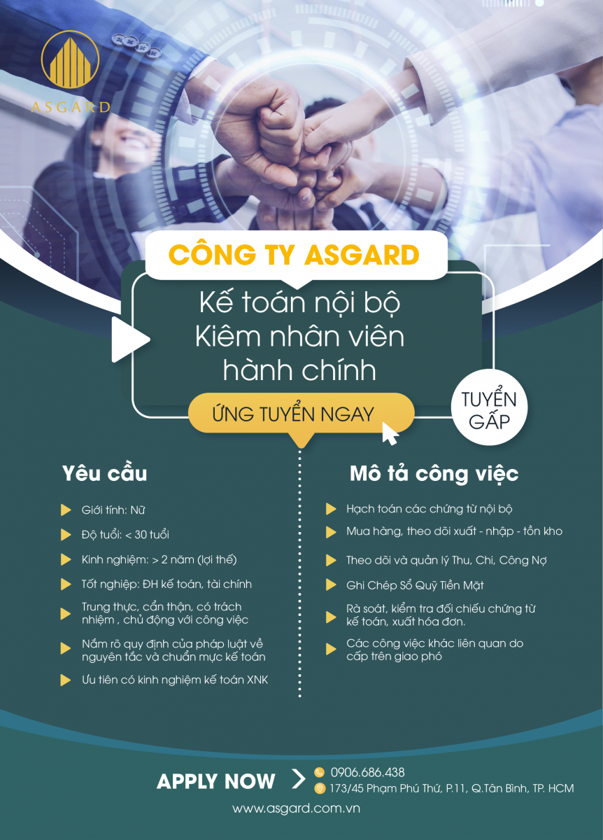 TUYỂN GẤP KẾ TOÁN NỘI BỘ KIÊM NHÂN VIÊN HÀNH CHÍNH